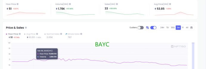 以BAYC為例,在今年1月中旬開始,地板從高點82ETH陰跌至低點44ETH,幾乎腰斬,現(xiàn)報價為51ETH。這一巨大的價格反轉已經(jīng)動搖了大多數(shù)NFT持有者的信仰。相比之下,加密貨幣市場的表現(xiàn)如此強勁,導致一些持有NFT的人轉而進入加密貨幣市場。